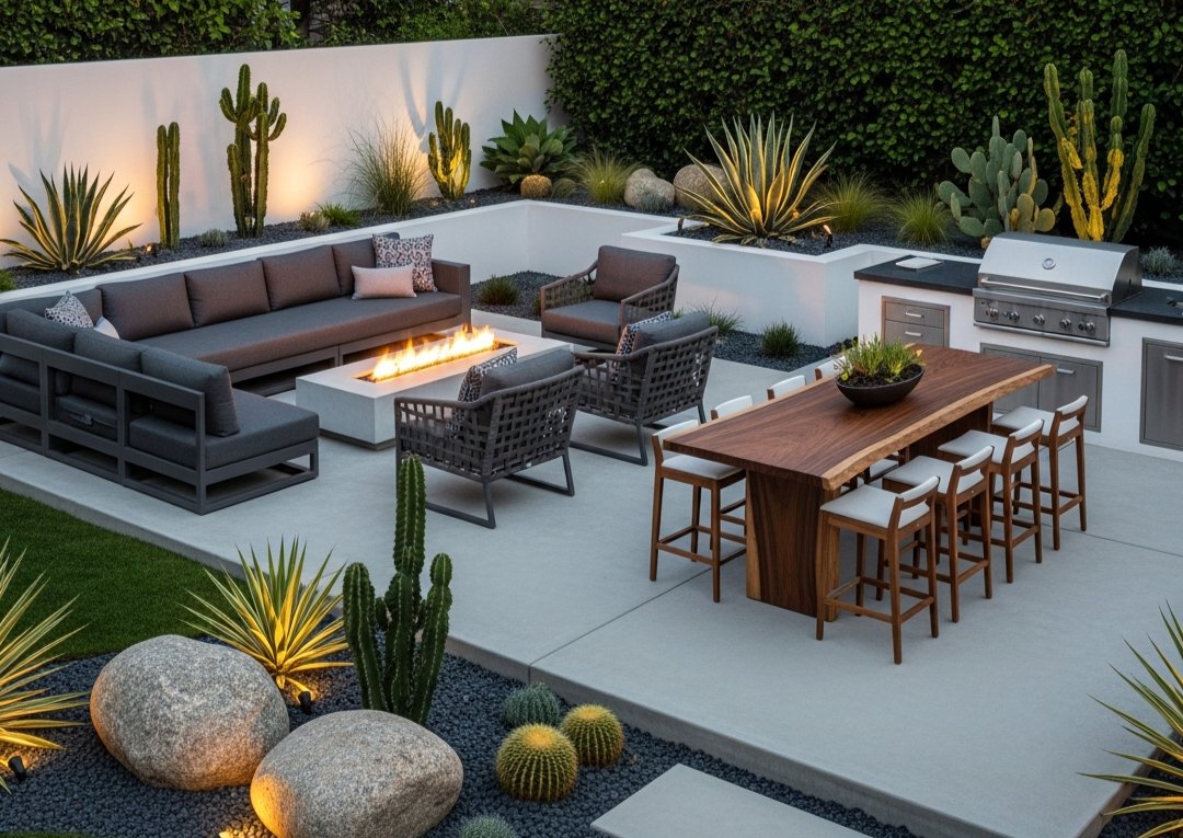 Funkcjonalna przestrzeń tarasowa powinna być wyraźnie podzielona na strefy. Najczęściej są to strefa wypoczynkowa, strefa jadalniana oraz strefa relaksu typu lounge. W większych realizacjach pojawia się także strefa kulinarna. Taki podział nie wymaga fizycznych barier – wystarczą odpowiednio dobrane meble, zmiana układu lub kierunku ustawienia poszczególnych elementów.